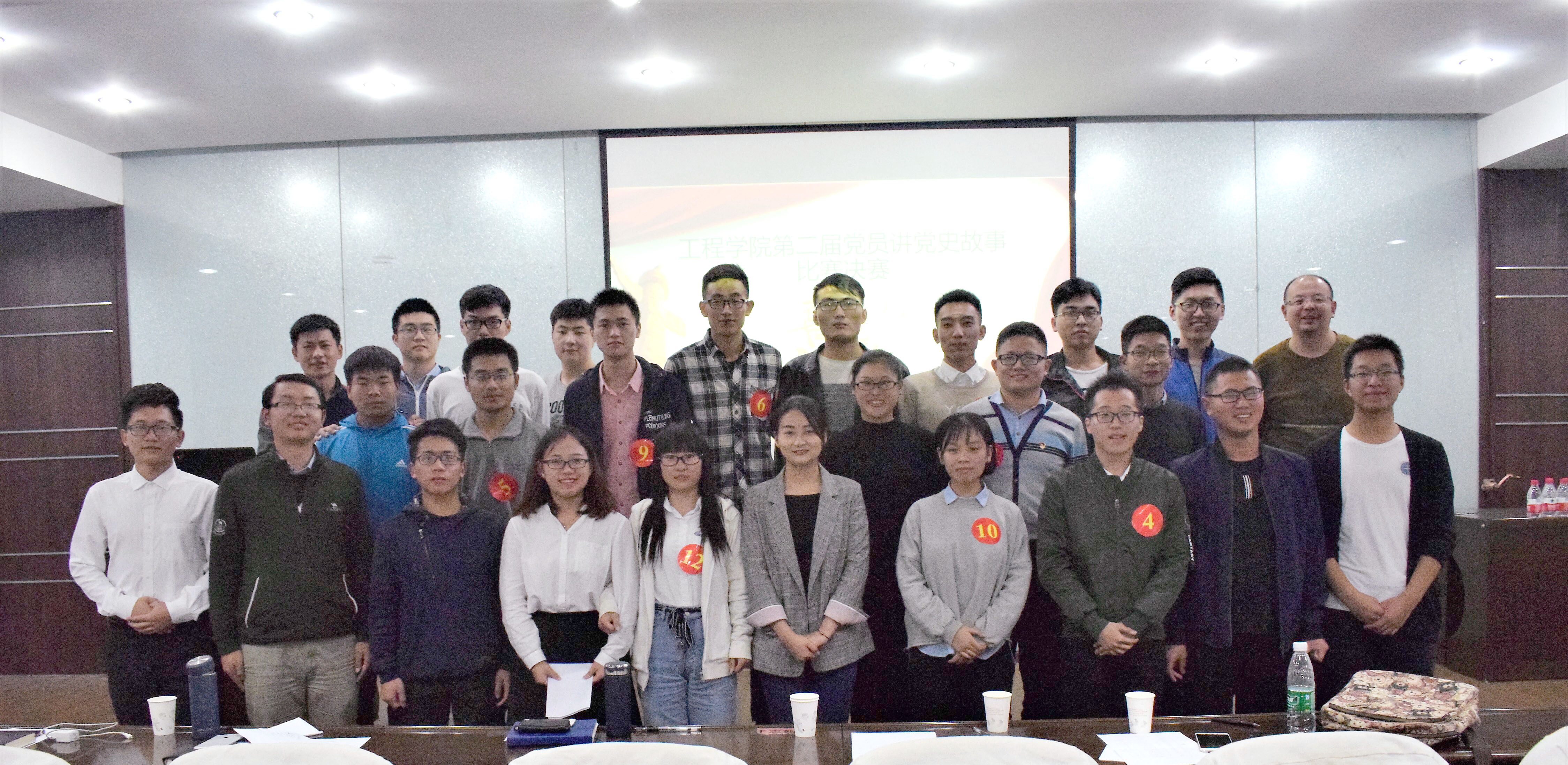 由工程学院党委举办的“传承革命情,喜迎十九大”——党员讲党史故事比赛,于10月15日晚7:00在工程楼418成功举行。学院党委副书记江广长、团委书记郭小玉、辅导员文新、王俊及各党支部党员代表、发展对象参加了活动。