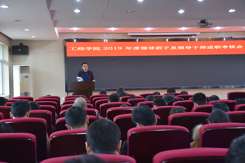 (通讯员王灿)2020年1月6日下午14:00,工程学院在工程楼418报告厅召开了2019年度领导班子及领导干部述职考核会。学院全体教职工参加此次会议,会议由院党委书记陈飞主持。