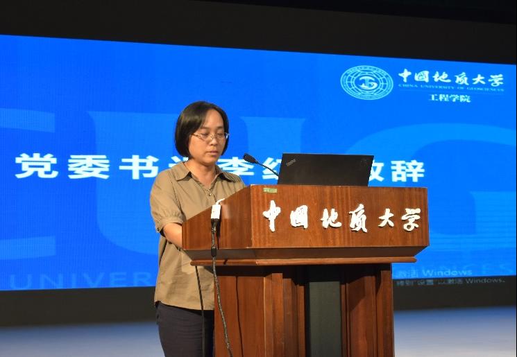 工程学院党委书记李红丽对856名新工程人表示热烈的欢迎。她从四个方面对新生提出期望:其一,要明辨是非、通晓道理。面对加速演进的时代变局,不盲目权威,不轻信谣言。坚守正义,行稳致远,争做品学兼优的高层次人才;其二,要崇尚务实,知行合一。立足自身优势,遵循成长规律,坚持厚积薄发,成长为真善美的新时代工程人。其三,要开拓创新,追求真理。努力培养独立思考的能力,秉持求真精神与好奇之心。勤奋学习,刻苦钻研,立志成为地质工程领域的骨干力量。其四,要坚守初心,砥砺前行。在接下来的学业生涯中攻坚克难,锻造本领,秉持“明理、尚实、拓新、砺行”的院训精神,拓展格局与视野,争做追求卓越新青年。