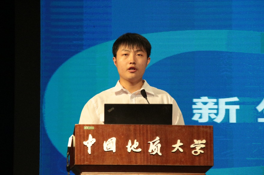 新生代表于耀捷发言。他说,作为一名新生,要不负“锤炼本领,迎接挑战”的殷殷期盼,承载工程学院七十年砥砺奋进、追求卓越的工匠精神,努力把自己培养成一名德才兼备的新型人才,展现新时代地大人的风采。
