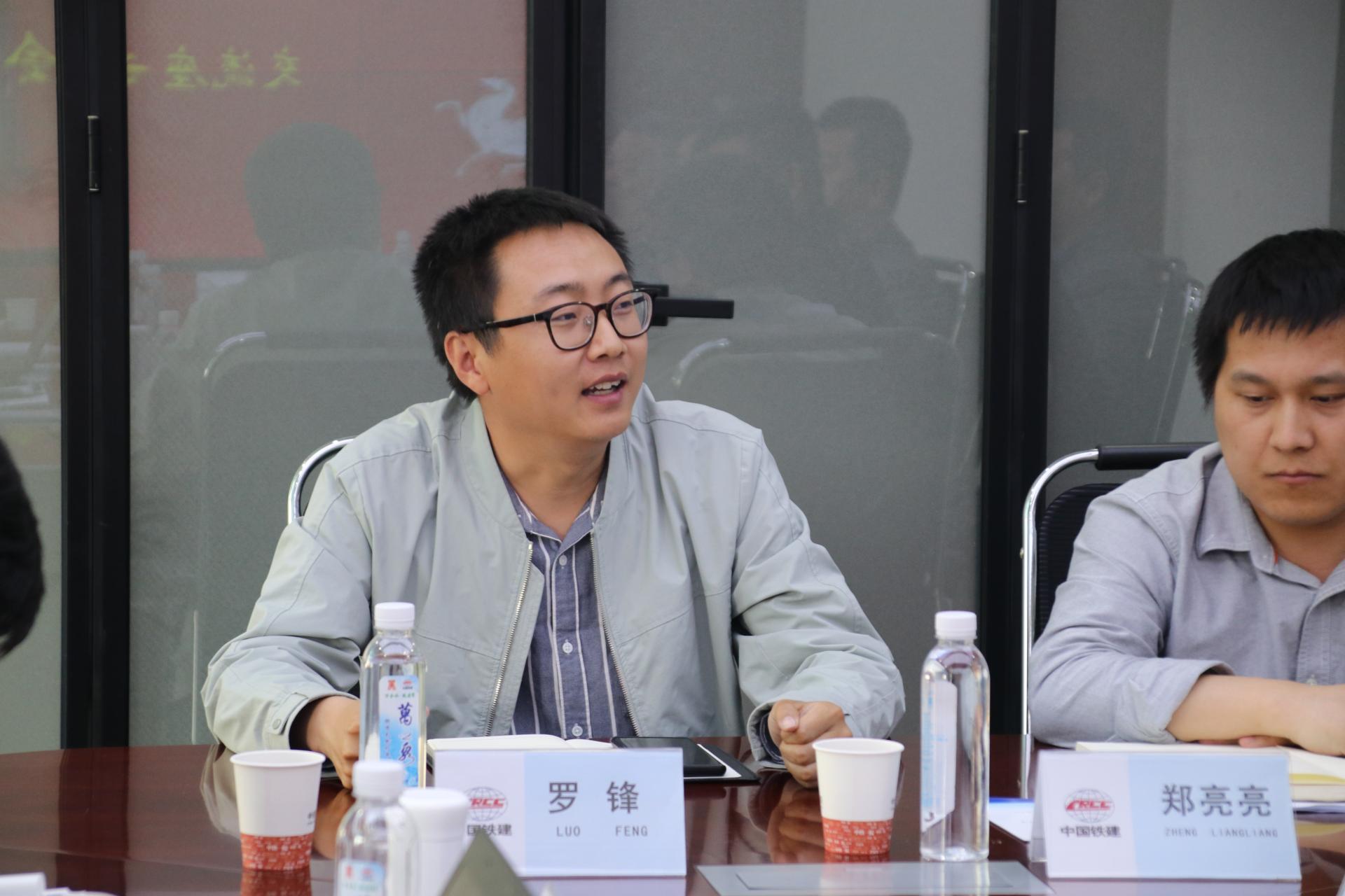 参观院史展览馆后,师生们与铁一院地质路基设计院(简称“地路院”)展开交流座谈。地路院党委书记、院长郭韫武,总工程师、副院长张文忠,副院长张志亮,副总工程师周福军,地路二所所长黄杰,综合室副主任王飞,勘探所副所长郑亮亮,团委书记罗锋参加座谈。